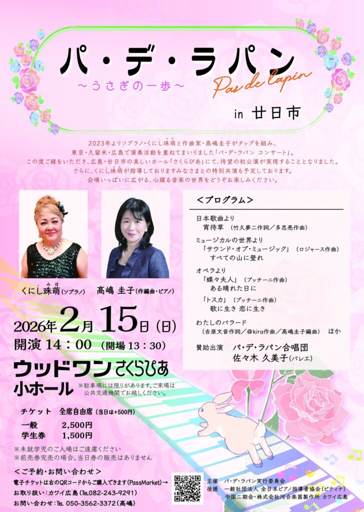 この度ご縁をいただき、広島・廿日市の美しいホール「さくらぴあ」にて、待望の初公演が実現することとなりました。