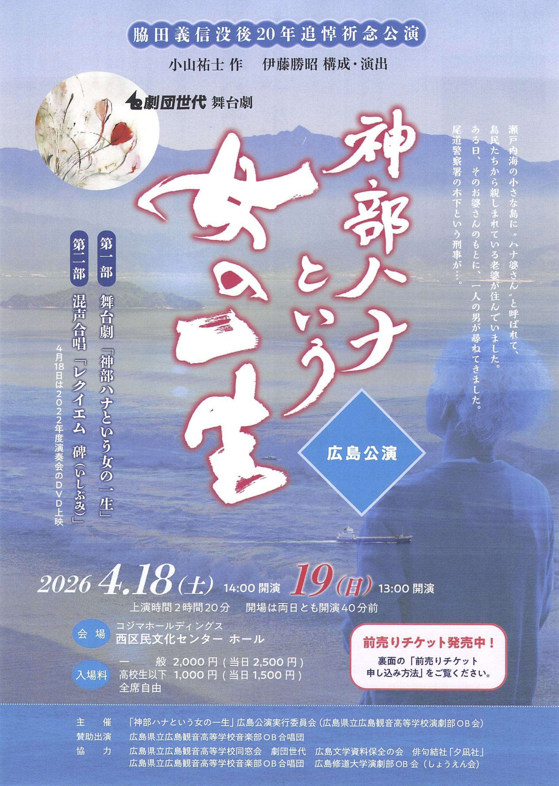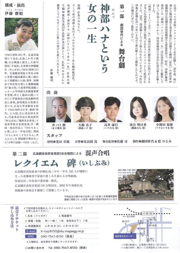 このたび、同窓生の伊藤勝昭さんの構成・演出により、演劇部OB会による公演が広島で開催されます。