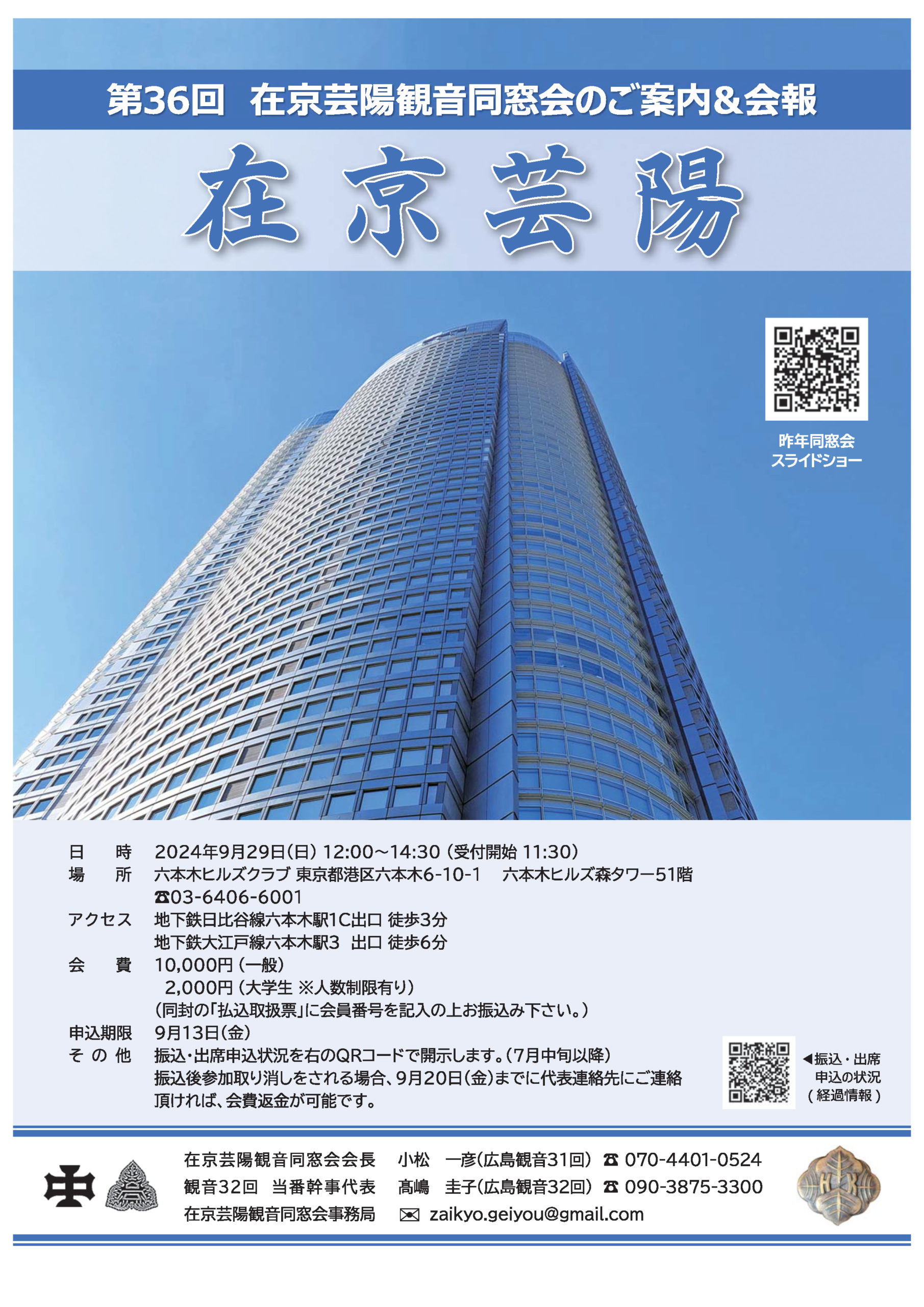 (連絡先) 在京芸陽観音同窓会 zaikyo.geiyou@gmail.com